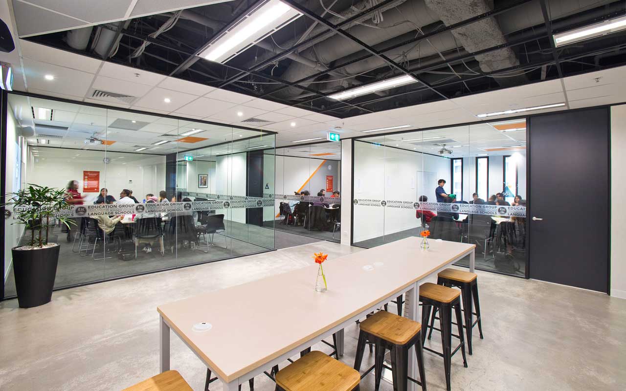 Entra en el moderno campus de ILSC y descubrirás un espacio que favorece un aprendizaje interactivo para estudiantes, junto con un sentimiento arquitectónico que se ajusta al ambiente cool y elegante de la ciudad. La escuela está localizada a unos pasos de la estación Southern Cross Railway, el centro principal para ir a donde necesites. Está cerca también de cafés increibles, de deliciosos restaurantes, y shoppings.